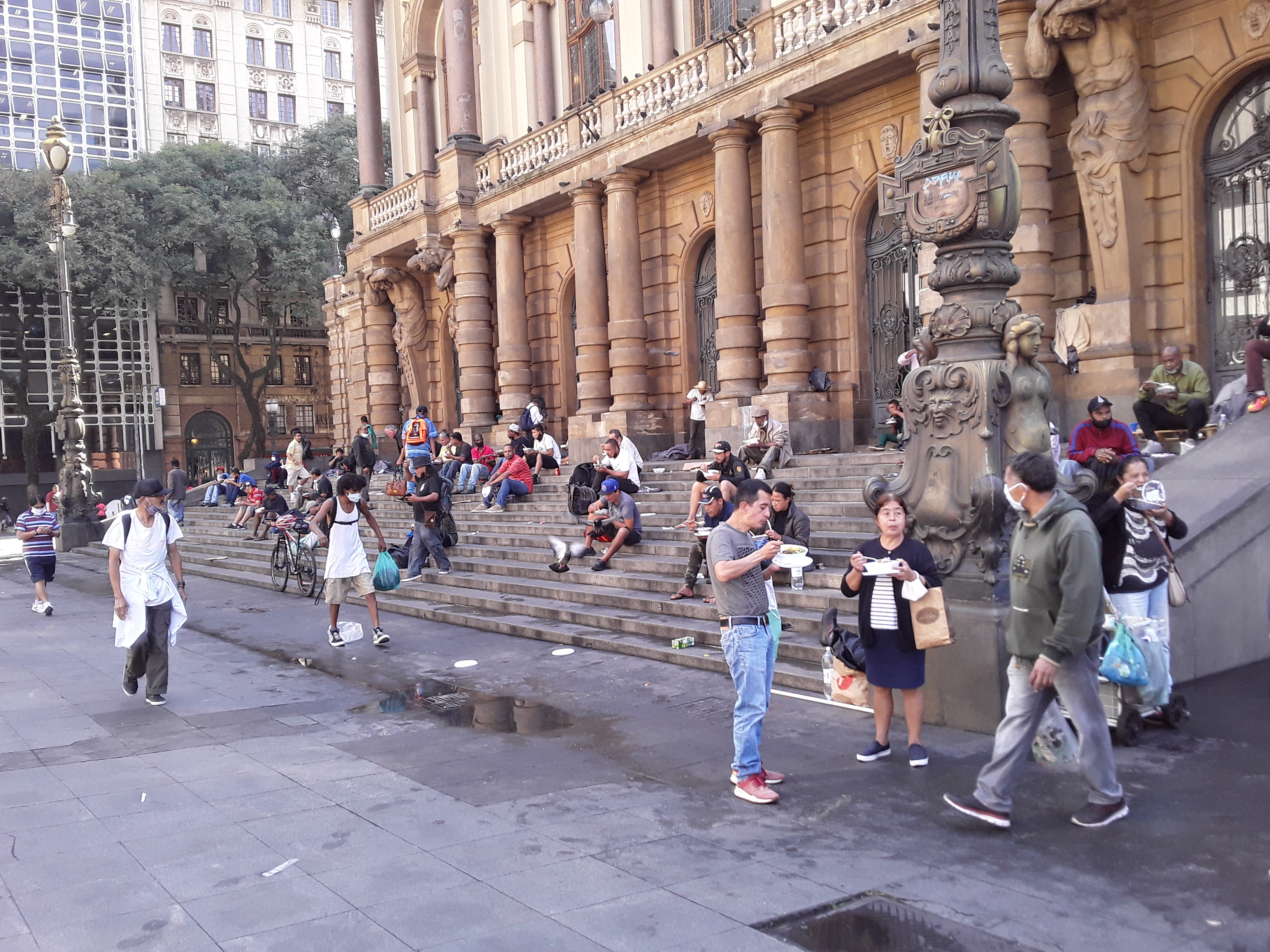 Apesar do elevado índice de contaminação e mortalidade apontado por pesquisas, principalmente no Brasil, ve-se diariamente pessoas circulando normalmente pelas ruas de São Paulo, muitas delas por motivos justos, pois precisam do trabalho, e outras por não terem o que fazer em suas casas ou nos locais onde vivem. No entanto a prefeitura de São Paulo vem ajudando os mais carentes. E, ainda que essa ajuda seja muito pouco, é fundamental o esforço do estado com essa finalidade. Na Quinta-feira, 26/7, a reportagem da Editora Noglobo imprensa esteve frente ao Teatro municipal, no centro de São Paulo, conferindo uma das ações da prefeitura local, distribuição de 400 marmitex aos mais necessitados, e nessa oportunidade conversou com um morador de rua, o jovem Tiago, que fez questão de afirmar que se não fosse o alimento que vem tendo todos os dias através de doação da prefeituta, poderia não está vivo. Ele agradeceu aos responsáveis pela distribuição dos marmitexs e foi muito simpático ao concedor entrevista à reportagem Noglobo. |